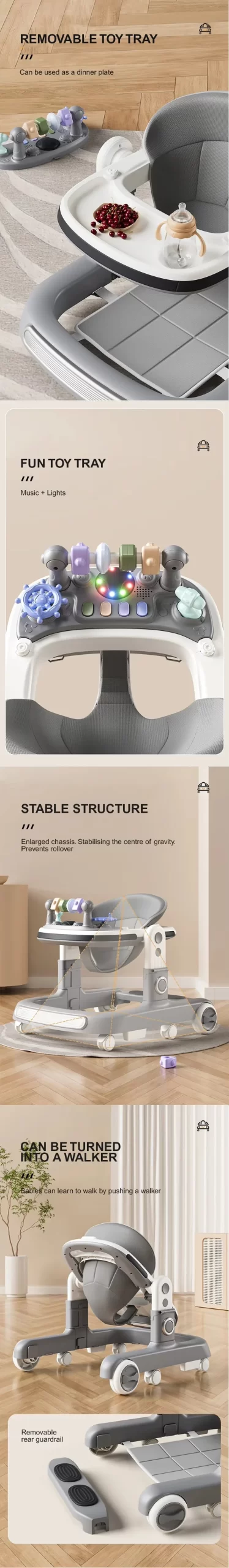 - 🍽️ Removable Tray with Cup Holder:The detachable front tray with built-in cup holder offers convenience for feeding and on-the-go drinks.